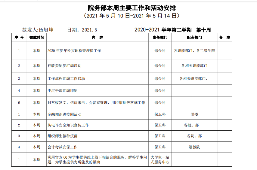 beat365正版唯一入口必一院务部第十周工作安排