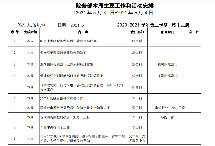 beat365正版唯一入口必一院务部第十三周工作安排