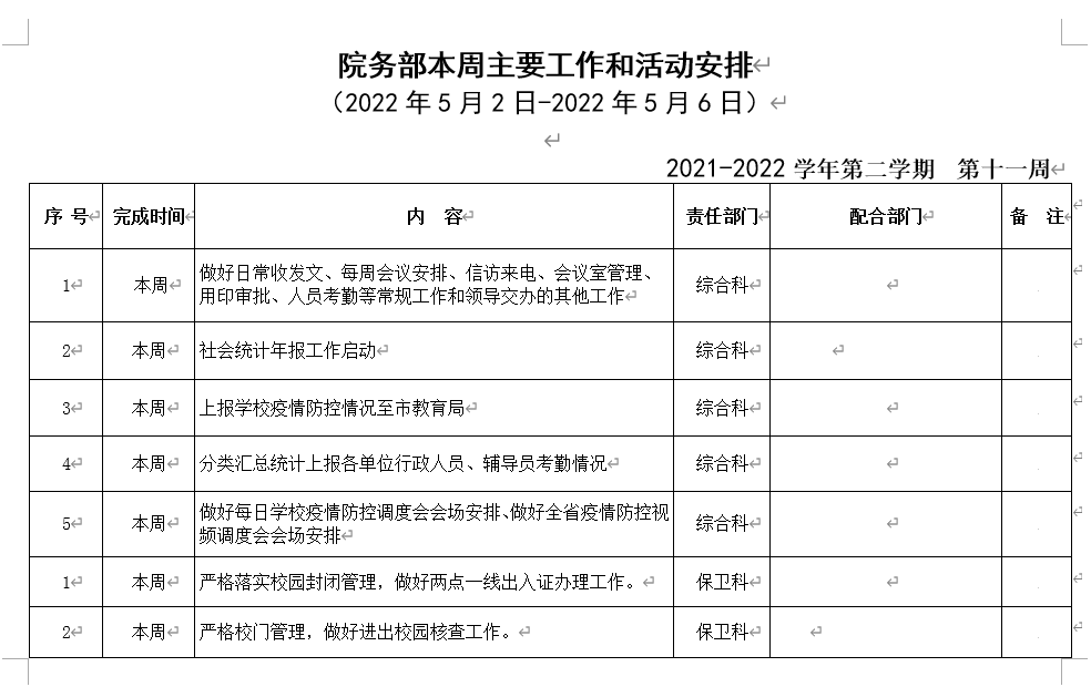 beat365正版唯一入口必一院务部第十一周工作安排