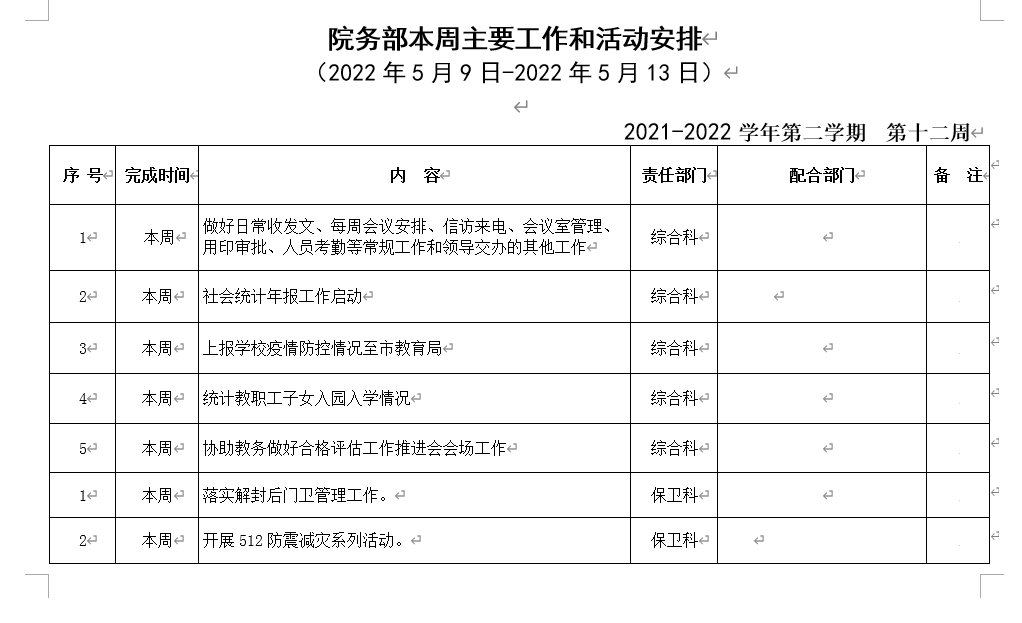 beat365正版唯一入口必一院务部第十二周工作安排