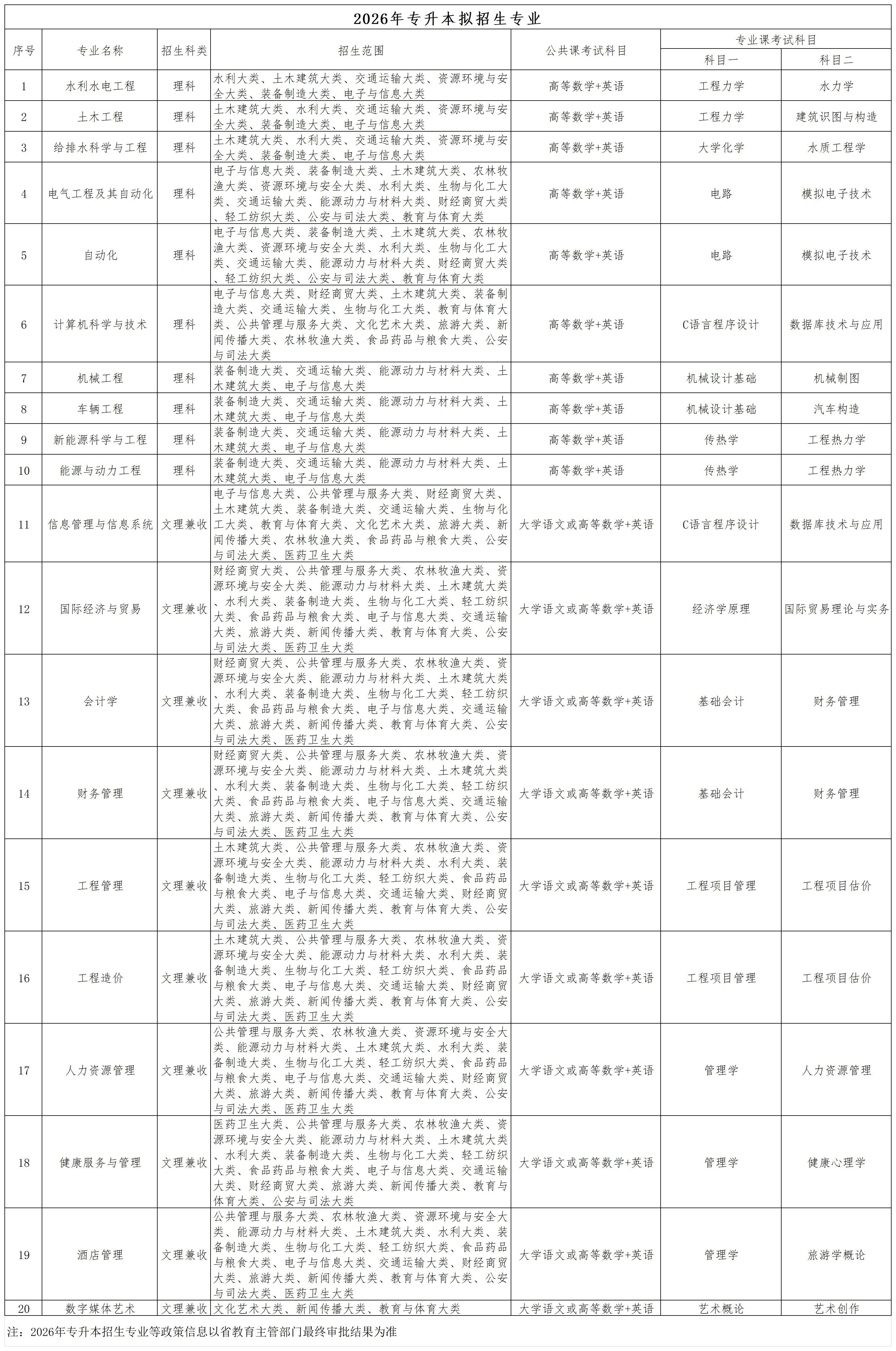 beat365正版唯一入口必一2026年专升本拟招生专业一览表