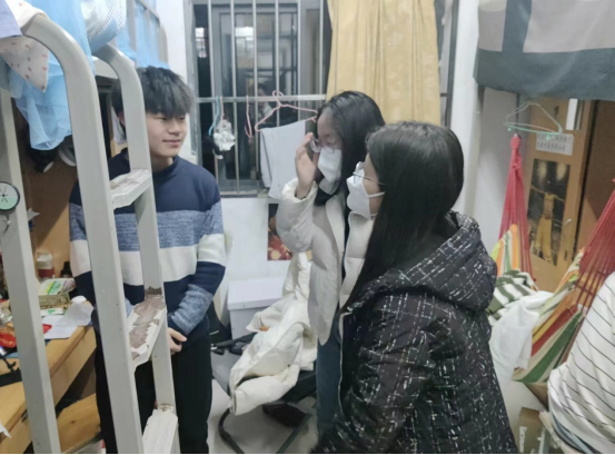 晚上22:10,全体辅导员来到学生宿舍1号楼宿管站集合,按照分配的检查任务大家对学生宿舍进行检查。本次检查重点是对学生晚归、夜不归宿、未经批准在外住宿等现象进行检查。此外还对学生在宿舍内违规使用大功率电器、饲养宠物、卫生状况等影响宿舍安全和卫生的不良现象进行检查和督促整改。此次检查过程中对出现的问题现场做出处理,对寝室整体整洁度、用电规范等提出要求。通过检查未发现夜不归寝等不良现象,学生宿舍状态整体良好,但仍存在少数宿舍卫生情况差以及使用大功率电器等情况。接下来辅导员老师将认真做好宿舍走访工作,同时利用班会等教育形式,强化学生教育管理,为学生营造良好的学习、生活环境和氛围。