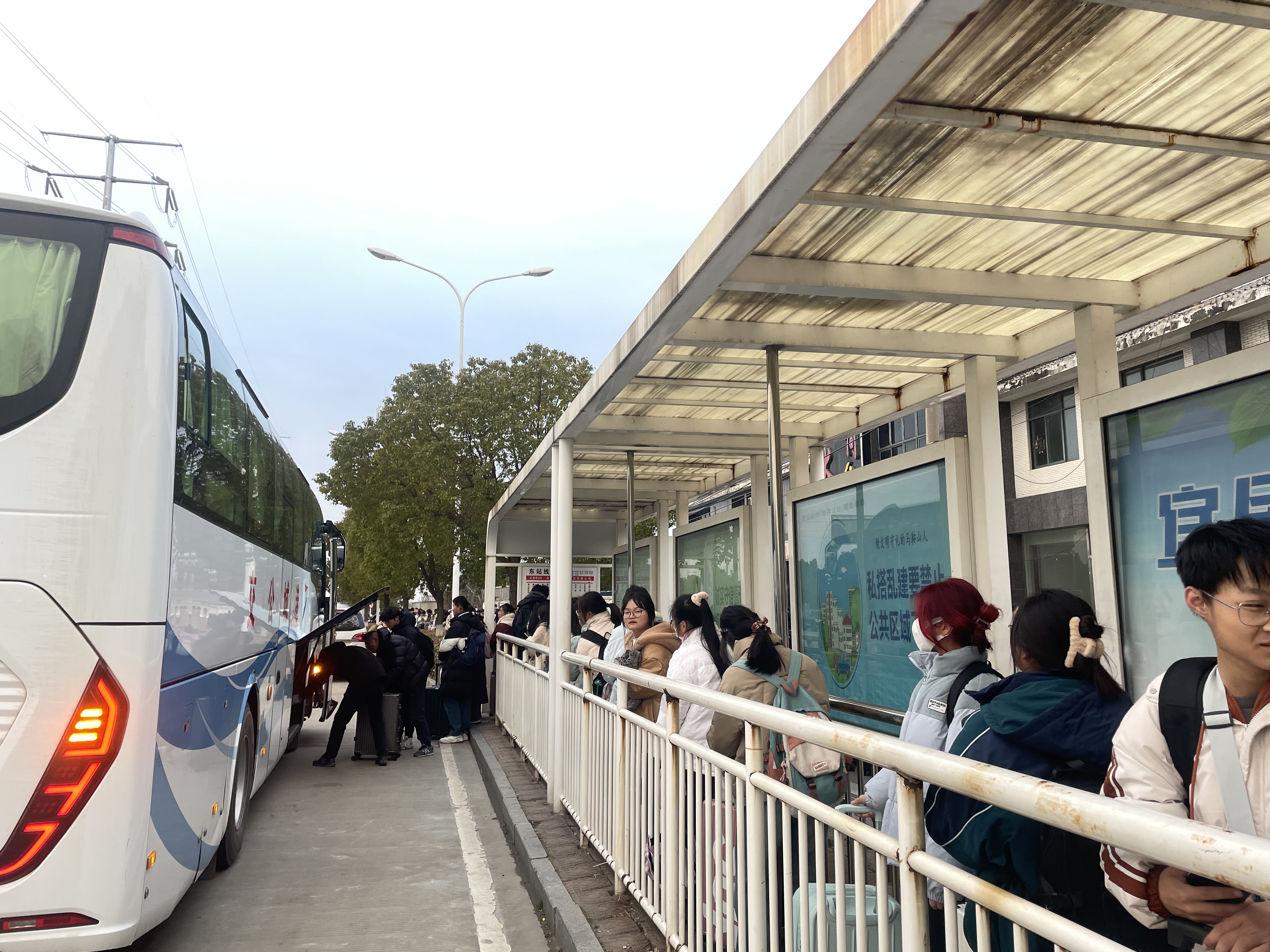 每个班次发车前对所有车辆进行彻底消毒,确保给同学们提供更加安全、便捷、舒适的出行环境。干净整洁的公交车有序驶入校门口站点,整齐地停在公交站台“待命”,需乘坐高铁回家的同学们高高兴兴地提着行李有序地排队上车。有的学生行李较多,公交公司的工作人员帮助放置。“太贴心了!定制公交中途不停,缩短了路上的时间,方便快捷,不会耽误高铁时间。为公交部门的行为点赞!”(郑蒲港校区综合办 供稿)