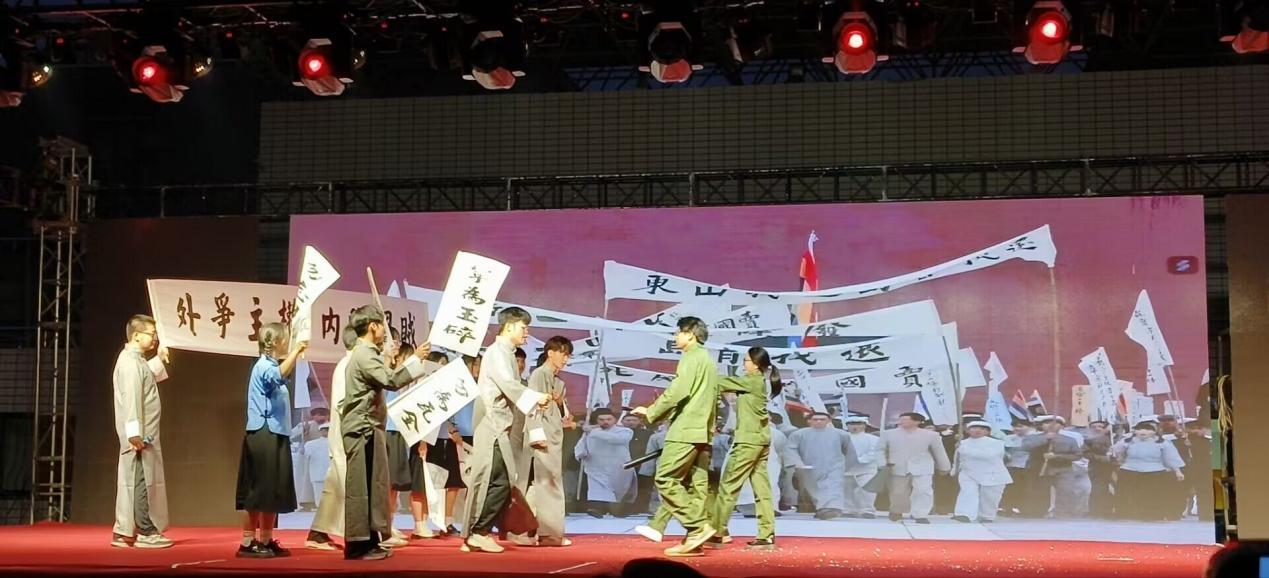 在华美的晚会前夕,大屏幕上轮番播放着本次盛宴的预告片以及各领导对学子们的诚挚祝福。18点52分,随着四位主持人的激昂登场,首个节目舞蹈《Fiesta》如火焰般点燃了现场的热烈气氛,舞者们灵动的身姿和灿烂的笑容展现出大学生的蓬勃朝气,观众们纷纷挥舞着荧光棒,共同沉醉在这狂欢的海洋。随后,歌曲《这就是爱》等歌曲更是淋漓尽致地诠释了青春少年少女们心中的激情与爱情的纯真。紧接着,由大艺团演绎的爱国题材话剧《黎明》正激情澎湃地精彩上演。演员们全身心地投入其中,以激昂的情绪和饱满的姿态,活灵活现地演绎着那段波澜壮阔的历史。他们的每一个动作、每一个表情都满溢着学生们对国家深沉的热爱与忠诚。击剑《历史剑术对决》和相声《相声新时代》以及跆拳道《跆风》让人耳目一新,给同学们带来了无尽欢声笑语。管理学院辅导员们给同学们带来的歌曲《上春山》,春风得意正少年,这首歌像春天的信使,鼓励学子们保持希望,积极面对生活中的每一个春天,让大家感觉如沐春风,不仅仅给我们带来了听觉上的享受,更给我们带来了精神上的激励。最后,全体辅导员们的歌曲《离别开出花》告诉我们,所有的开始都是从离别中开出的花,不要害怕离别,那只是我们更好的开始的前奏。