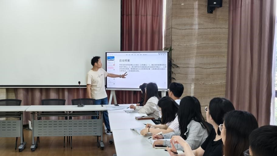 下午15:20,全体工作小组成员在行政楼一号会议室召开了工作部署会,校区综合办潘跃林对演练方案进行了详细解读,并一一部署了各小组人员构成和职责分工。