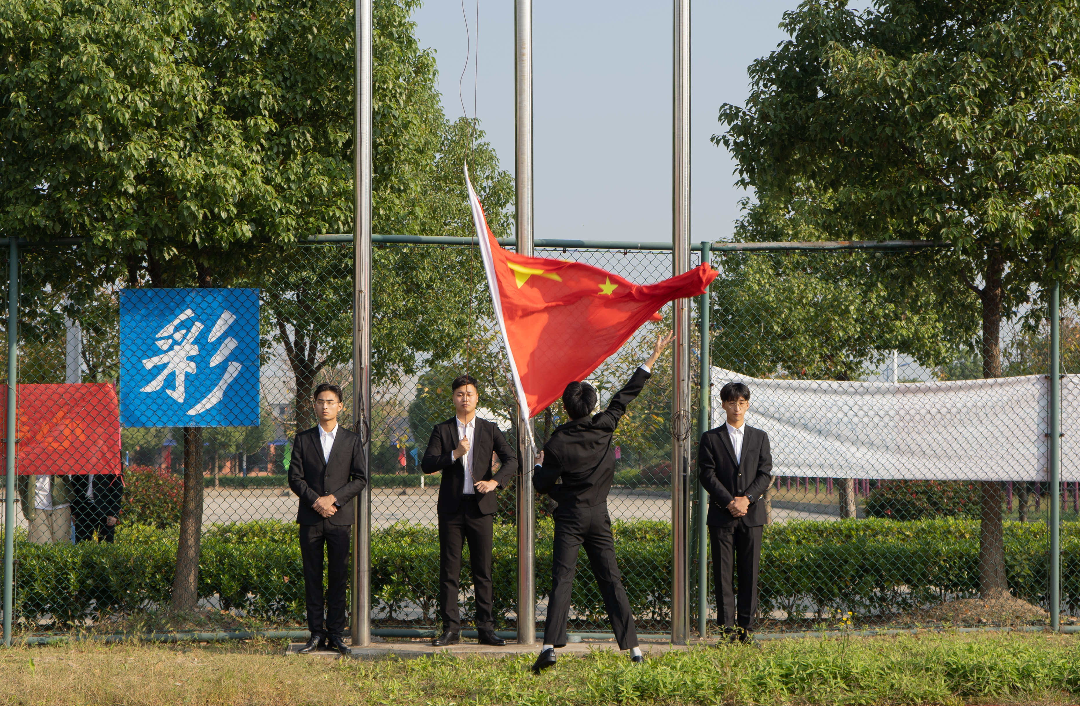宣读完军训团成员名单后,刘志祥书记向军训部队授旗。
