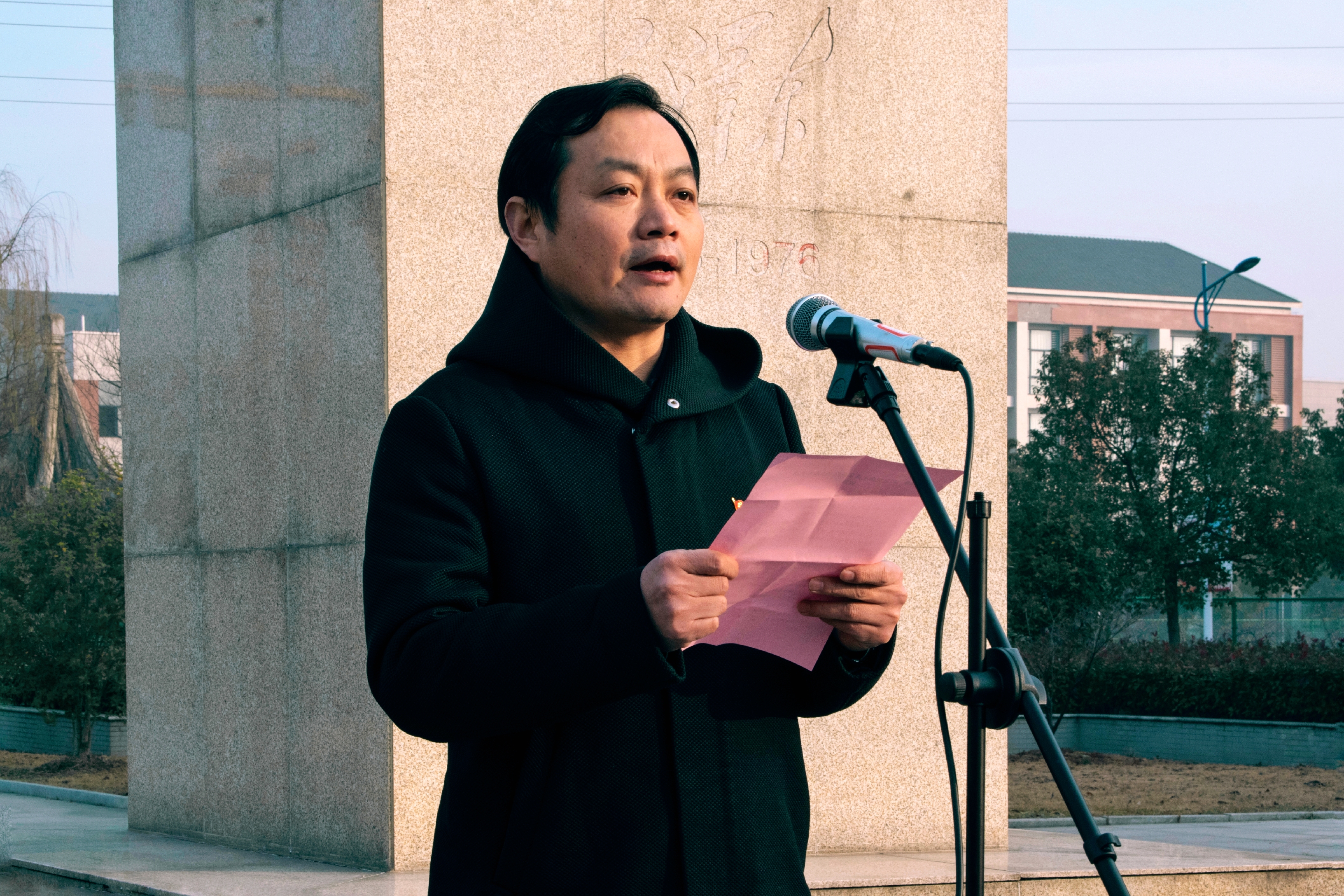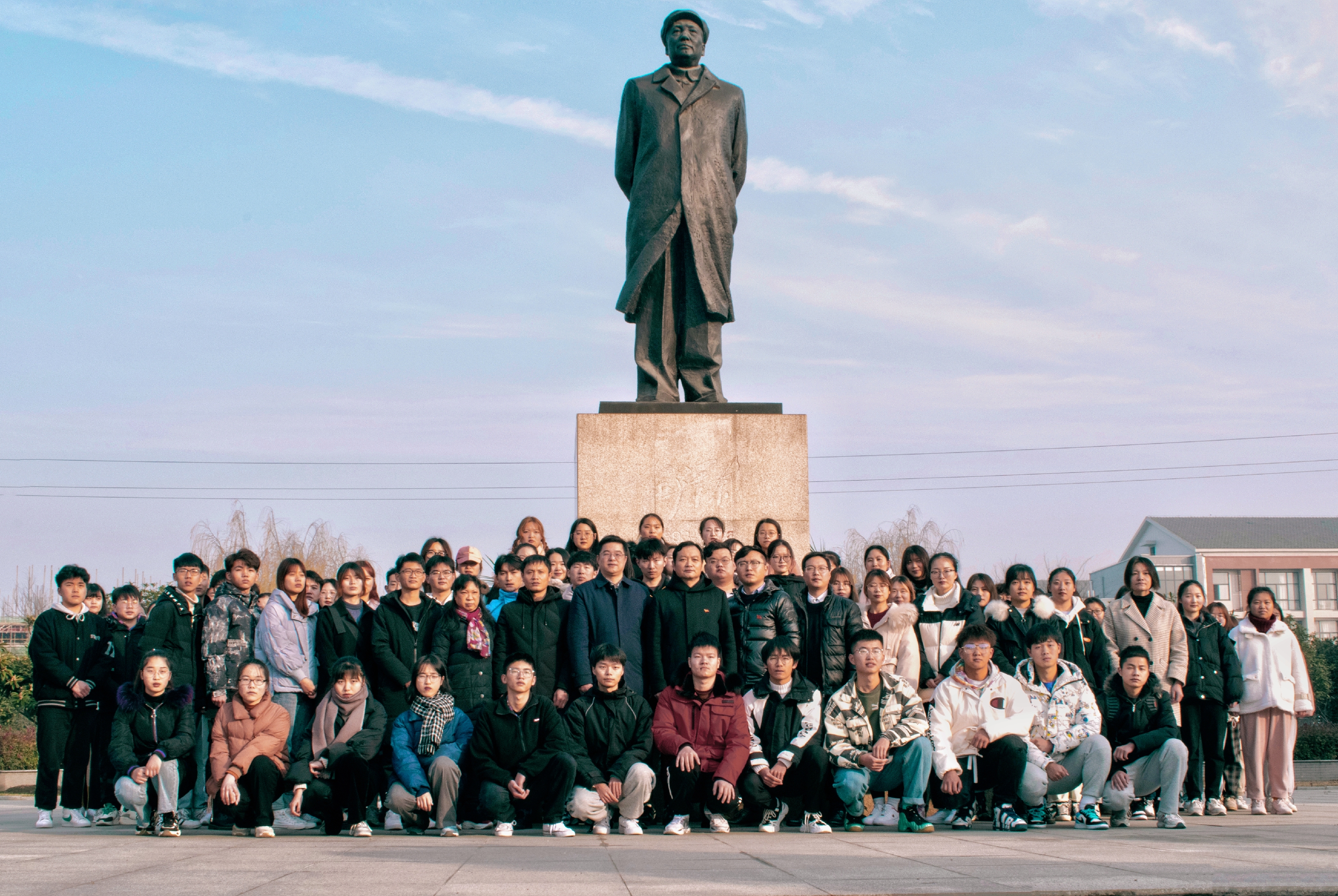 最后,周其松致闭幕词,全体师生在主席像下合影留念。