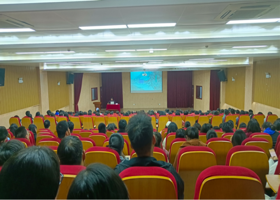 讲座开始前,李咏东老师和学生代表分别深情地朗诵了《我爱这土地》、《祖国啊,我亲爱的祖国》诗歌,在两首深表爱国情怀的诗朗诵之后,南京诚明书院徐洪磊院长以“立报国之志•做有为青年”为主题正式开始了本次讲座。徐洪磊以影视剧《觉醒年代》中的陈乔年、陈延年两位先烈为例,讲述了革命者的爱国情怀,前辈如此,吾辈何已异?在场师生无不动然。随后,徐洪磊讲述了戍边英雄陈祥榕的生动事迹,“清澈的爱,只为中国”,陈祥榕用青春和生命诠释了对祖国、对人民的爱。最后,徐洪磊给大家讲述了南京大屠杀历史,要求大家不忘国耻,牢记历史,以史为鉴,时刻保持忧患意识,现场下掌声雷动。