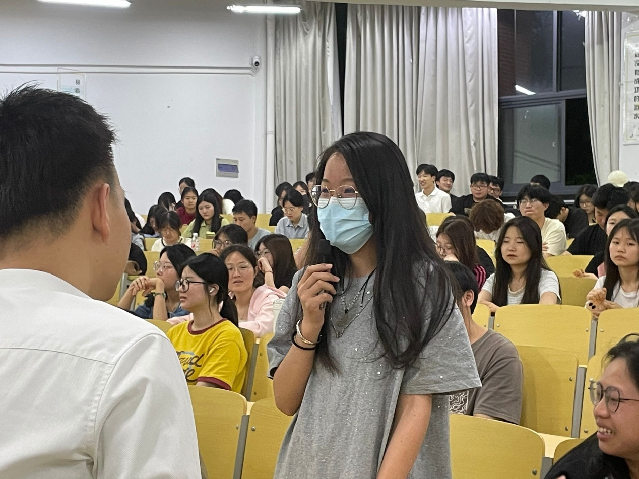 晚上六点半,讲座正式开始。老师首先详细阐述了血液对于人体的重要性。他通过生动的比喻和清晰的讲解,让同学们明白血液在维持人体健康和生命活动中的关键地位。接着,老师运用大量的数据和真实案例,深刻剖析了目前临床上血液需求的紧迫性。一个个生命垂危的患者因为及时得到了输血而重获新生,这些故事让同学们深受触动,深切感受到了献血的意义所在。接着,傅强老师着重强调了献血的意义与价值,他列举了众多因及时输血而获得新生的真实案例,那些曾经徘徊在生死边缘的患者,因为陌生人献出的一袋袋热血而重新燃起了生命的火焰。同学们从这些故事中深刻体会到,每一次献血都可能成为他人生命的转折点,是一份无比珍贵的馈赠。傅强老师有着200多次的献血经历,在介绍献血流程时,傅强老师详细地描述了每一个环节,还特别强调了在采血过程中需要注意的细节,这让同学们对整个献血过程有了清晰而全面的了解。对于同学们关心的献血安全性问题,傅强老师通过专业的知识和大量的数据进行了解答。他解释了采血器械的严格消毒标准、专业医护人员的操作规范等,打消了同学们的顾虑。同时,还介绍了不同血型系统的特点和输血时的匹配原则,让同学们明白了血型的重要性。在互动环节,现场气氛达到了高潮。同学们纷纷举手回答问题,更增强了对献血知识的深入理解。此外,老师还提到了献血者所享有的权益和荣誉,鼓励同学们积极参与献血活动,成为爱心传递的使者。